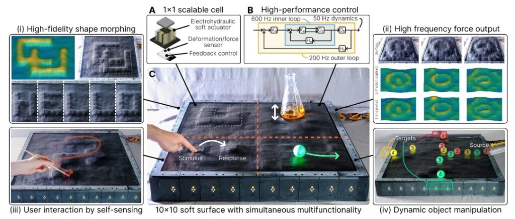 - Johnson BK, Naris M, Sundaram V, Volchko A, Ly K, Mitchell SK, Acome E, Kellaris, N, Keplinger C, Correll C, Humbert JS and Rentchler M, “A Multifunctional Soft Robotic Shape Display with High-Speed Actuation, Sensing and Control,” Nature Communications, Vol. 14, No. 1, 2023. DOI: 10.1038/s41467-023-39842-2.